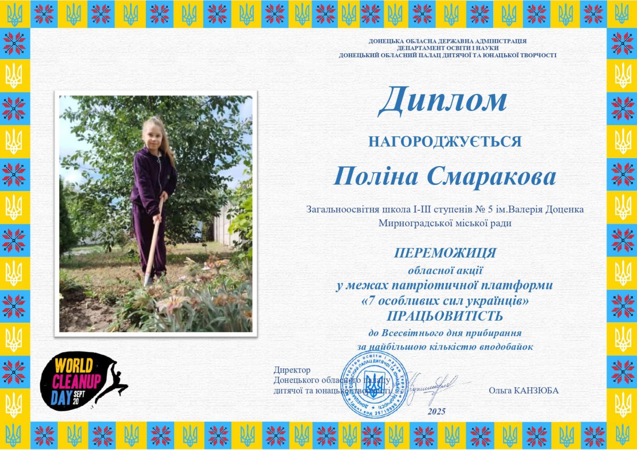 photo_2025-09-25_10-28-18 (2) > Підведено підсумки обласної акції в рамках «World Cleanup Day – 2025», присвяченої Всесвітньому дню прибирання в межах патріотичної платформи «7 особливих сил українців» > Акції > Донецький обласний палац дитячої та юнацької творчості